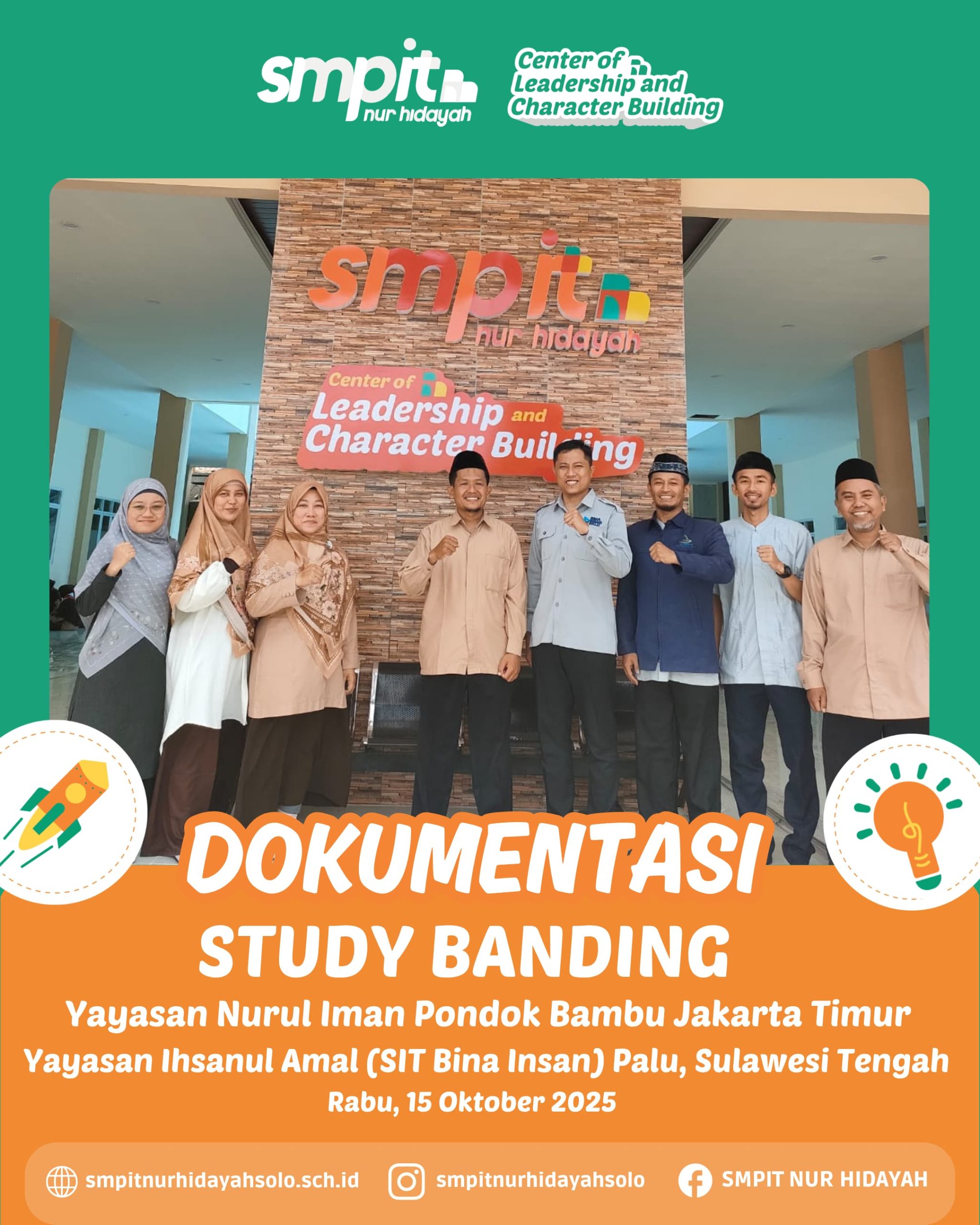 SMPIT Nur Hidayah Surakarta menjadi tuan rumah bagi kunjungan Study Banding yang berlangsung hangat dan produktif pada Rabu, 15 Oktober 2025. Dua yayasan terkemuka, Yayasan Nurul Iman Pondok Bambu Jakarta Timur dan Yayasan Ihsanul Amal Palu, berkesempatan mengunjungi SMPIT Nur Hidayah Surakarta untuk mempelajari lebih dekat program-program unggulan yang dijalankan sekolah ini.