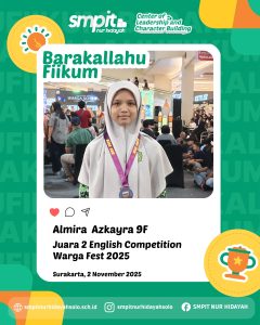 SMPIT Nur Hidayah Surakarta kembali menunjukkan keunggulannya dalam bidang olahraga dan strategi dengan meraih Juara 1 Battle 3on3 dalam Liga Airsoft Pelajar Piala Kevin Rizky 2025. Kompetisi yang diselenggarakan di Surakarta pada 22 Oktober 2025 ini diikuti oleh siswa-siswa berbakat dari berbagai sekolah di wilayah Surakarta dan sekitarnya.