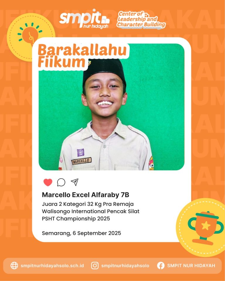Siswa SMPIT Nur Hidayah Surakarta, Marcello Excel Alfaraby kelas 7B, kembali mengukir prestasi gemilang dengan meraih…