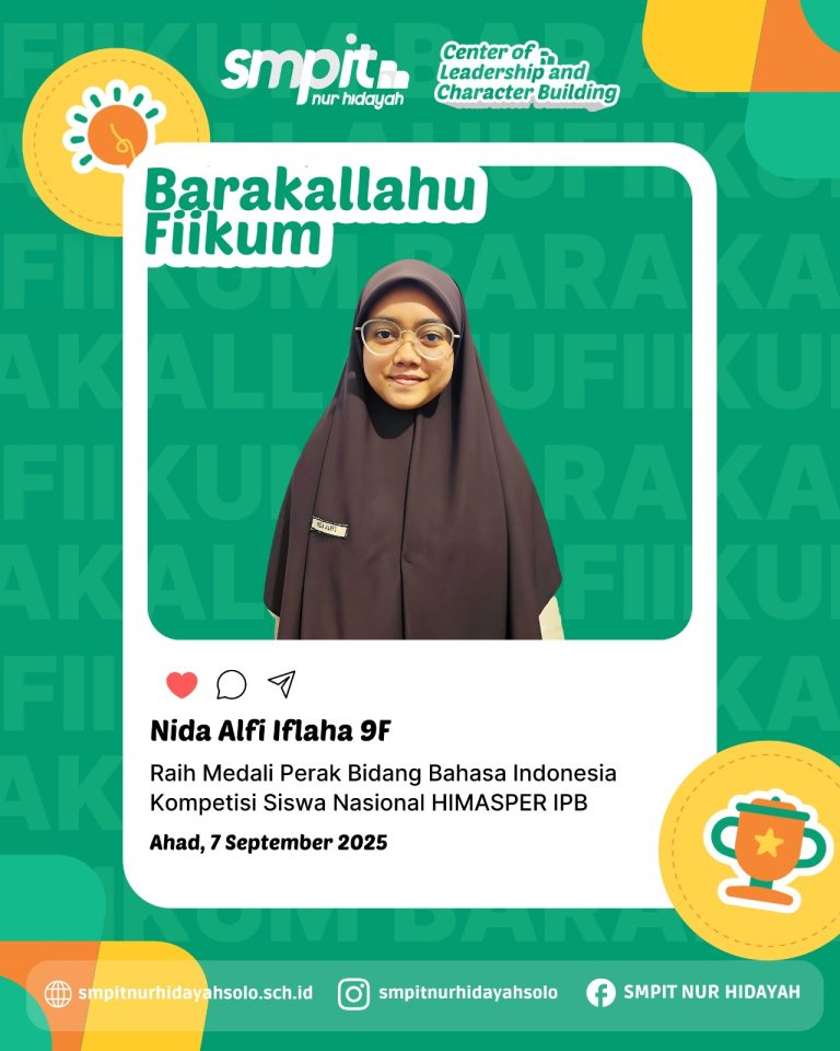 Nida Alfi Iflaha, siswi kelas 9F SMPIT Nur Hidayah Surakarta, kembali mengukir prestasi gemilang dengan meraih…