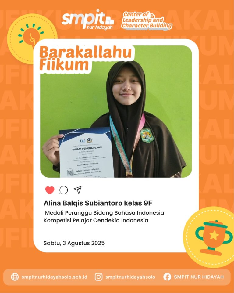 SMPIT Nur Hidayah Surakarta kembali menunjukkan keunggulan dengan prestasi gemilang dari siswi-siswi kelas 8. Hasna Azizah…